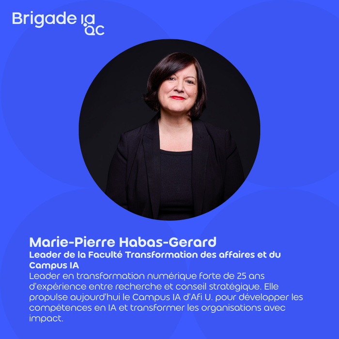 Vice-président de la délégation canadienne au sein d'ISO/IEC pour l'IA et président de celle pour la gouvernance, il est actif dans le développement des normes internationales dans ces domaines. Ex-gestionnaire à l'Université Laval, il accompagne les PME québécoises dans leur stratégie et l'évolution de leur gouvernance face à l'essor de l'IA.Marie-Pierre Habas-Gerard, Leader de la Faculté Transformation des affaires et du Campus IA, Afi U.