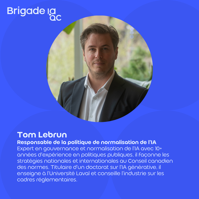 Fort de plus de 20 ans d'expérience en IA, du développement d'algorithmes à la commercialisation, Jean-François a œuvré pour des startups, PME et grandes entreprises. Il s'investit aussi comme mentor et formateur pour propulser l'écosystème de l'IA.Tom Lebrun, Responsable de la politique de normalisation de l'IA, Conseil canadien des normes