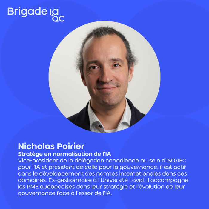 Spécialiste de l'activation IA pour les PME, elle transforme les défis d'affaires en solutions concrètes. Ex-responsable du programme Activation IA à Mila, elle partage son expertise comme chargée de cours à l'Université de Montréal.Nicholas Poirier, Stratège en normalisation de l'IA